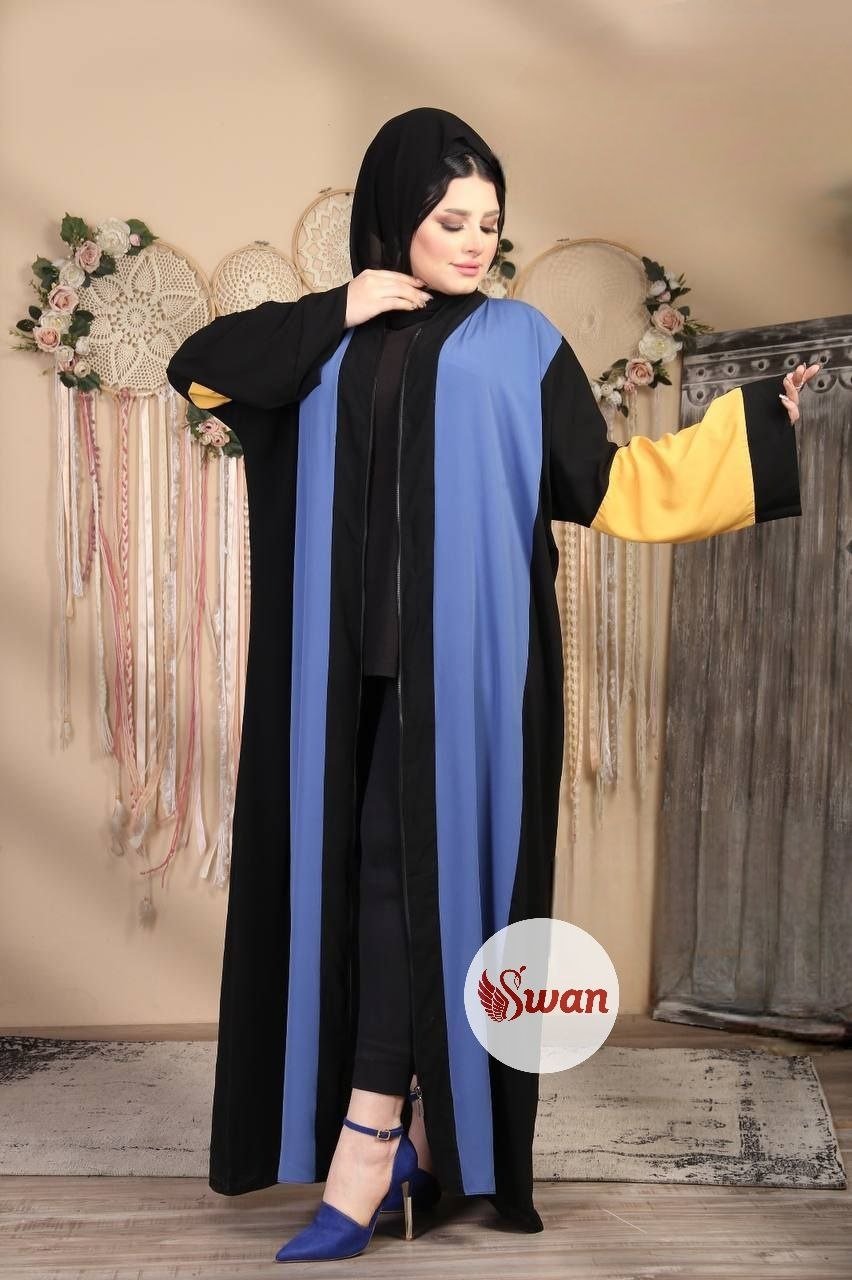 Style: Casual Pattern: Striped Description: Zippered Abaya with Capuche, Striped Lycra Pants on the sides Neck: None Sleeve: Long Wide Waist: None Length: 150cm Fabric Elasticity: Non-Stretch Fabric Texture: Crepe