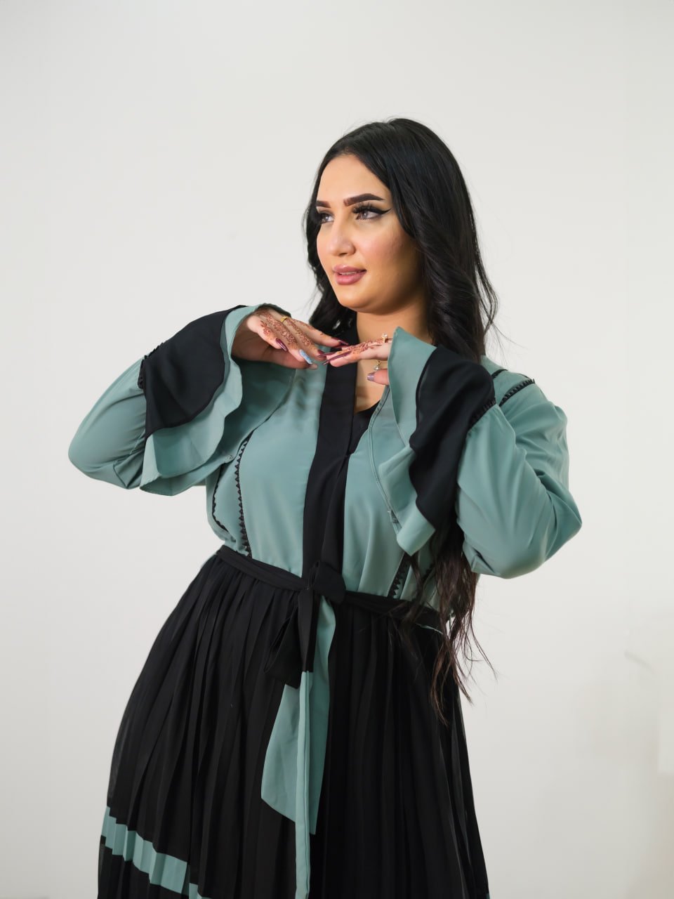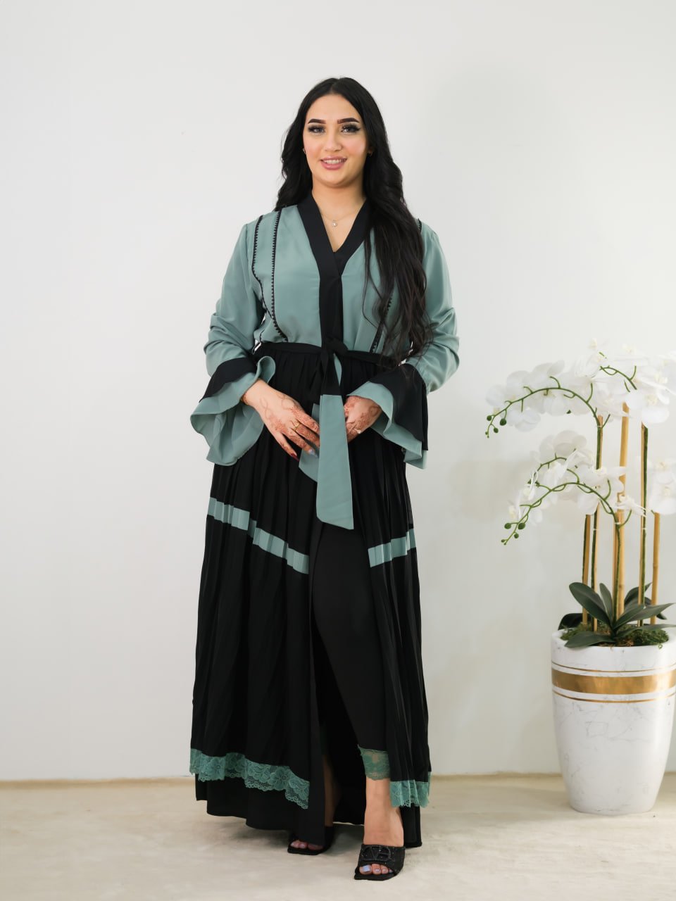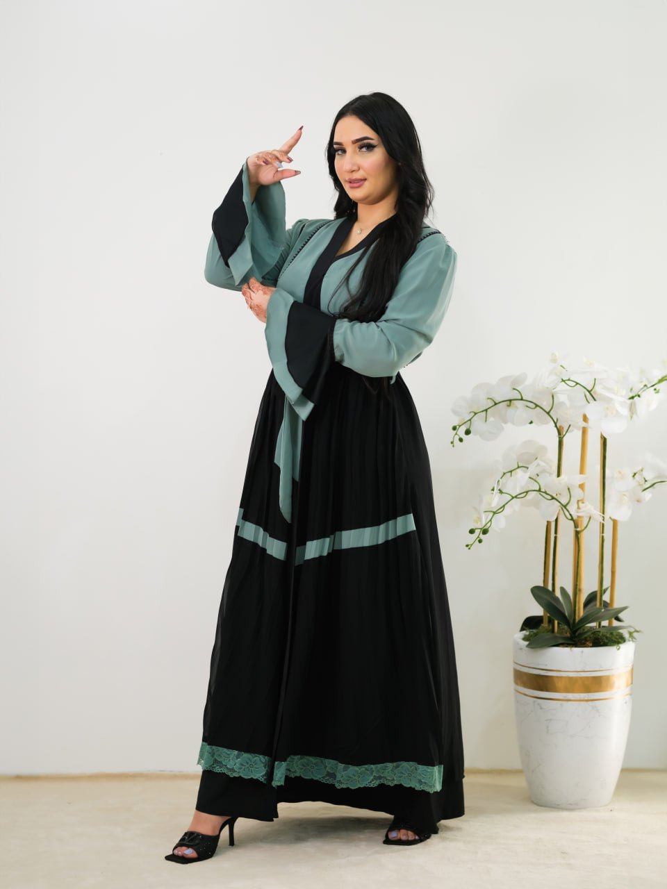 Style: Chic Pattern: Embroidery Description: Open Abaya Satin padding decorated with random Embroidery, Sequins Neck: Formal collar Sleeve: Long and Wide Waist: None Length: 137 cm Fabric Elasticity: Non-stretch Fabric Texture: Royal & Satin