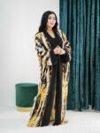Style: Casual Pattern: Tiger Print Description: Wide bisht, open butterfly Abaya with wide sleeves adorned with tiger print, buttons Neck: Regular Sleeve: Long bracelet Length: 150cm Fabric Elasticity: Non-stretch Fabric Texture: Crepe Washing Instructions: Low-temperature machine wash or dry clean