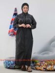 Style: Swimwear Pattern: Striped Description: 3-piece Burkini, Long zipper jacket with hidden belt, pockets, pants, Hijab, Gray Hijab for Dark blue Burkini , Black Hijab for black Burkini Neck: Slightly high Collar Sleeve: Long Waist: Belt Fabric Elasticity: Non-stretch Fabric Texture: Polyester Washing Instructions: Hand wash, do not use dry clean