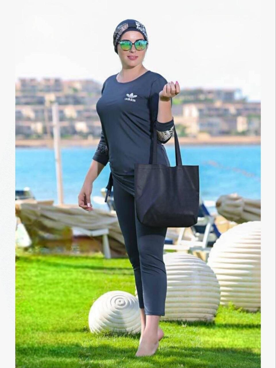 Style: Swimwear Pattern: Striped Description: 3-piece Burkini, Long zipper jacket with hidden belt, pockets, pants, Hijab, Gray Hijab for Dark blue Burkini , Black Hijab for black Burkini Neck: Slightly high Collar Sleeve: Long Waist: Belt Fabric Elasticity: Non-stretch Fabric Texture: Polyester Washing Instructions: Hand wash, do not use dry clean