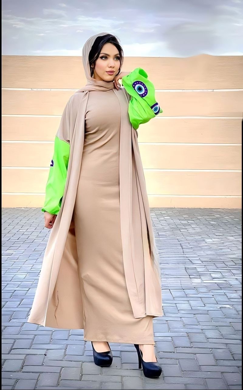 Style: Casual Pattern: Letters Description: cardigan decorated with Arabic letters print, capuche Neck: non Sleeve: Long open Waist: Regular Length: 125cm Fabric Elasticity: Not Stretchable Fabric Texture: Linen