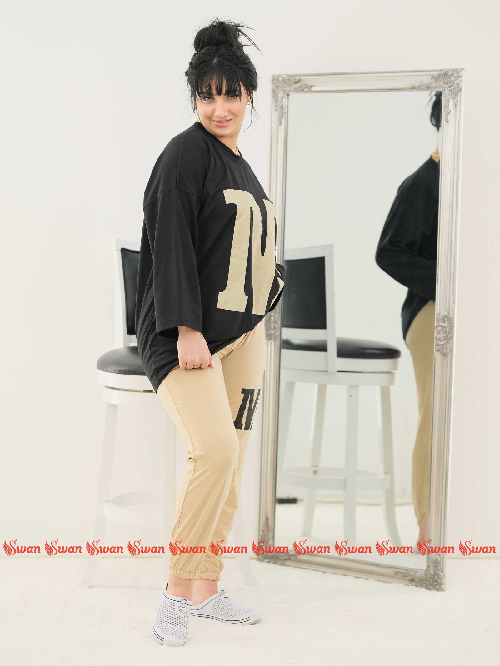 Style: Casual Pattern: Letters Description: Casual set, 2 pieces, pants, sweatshirt Neck: Regular Sleeve: Long and wide Fabric Elasticity: Slightly stretchy Fabric Texture: Sweatshirt - Cotton Lycra, Pants - Crepe Washing Instructions: Low-temperature machine wash or dry clean