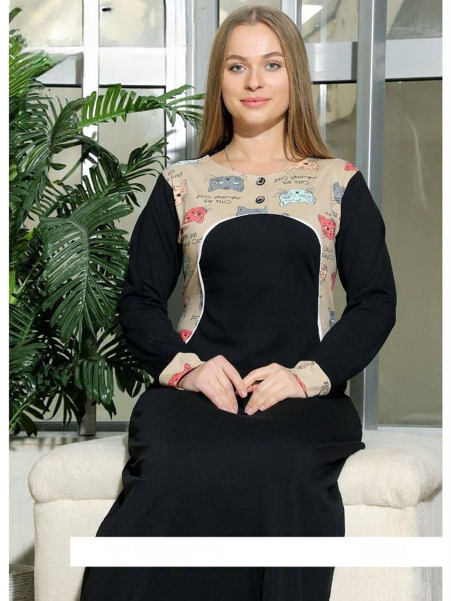Style: Homewear Pattern: logo Description:Â Homewear dress with logo print Neck: Round Collar Fabric Elasticity: Stretchable Fabric Texture: Cotton Lycra