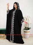 Style: Chic Pattern: Plain Description: close Abaya decorated Strass and Ribbons on the sleeve and back, with Hijab decorated Ribbons Neck: V-Collar Sleeve: Long and Wide Waist: Regular Length: 150cm Fabric Elasticity: Non-Stretch Fabric Texture: Crepe