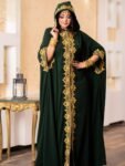 Style: Chic Heritage Pattern: Embroidery Number of Pieces: 2 pieces Description: Chiffon Serma Embroidered Kaftan with Fixed Embroidered Capuche, Serma Embroidered Outer Belt Neck: V Sleeve: Long, Wide Royal Waist: Belt Fabric Elasticity: Non-stretch Fabric Texture: Lined Chiffon Washing Instructions: Low-temperature machine wash or dry clean
