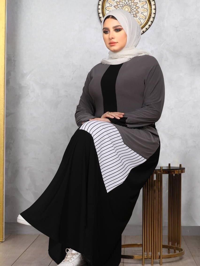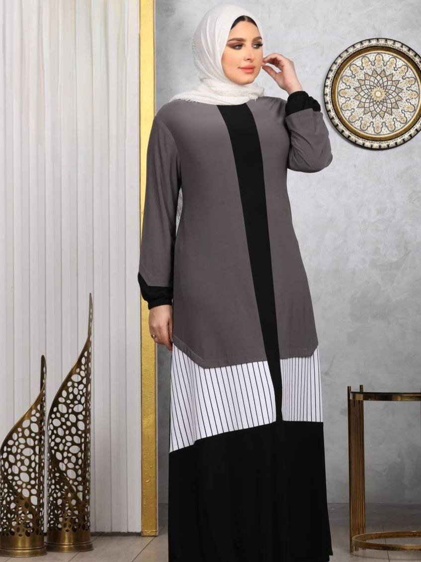 Style: Homewear Pattern: Striped Description: Prayer Asdal, buttons on sleeves with separate hijab Neck: Round collar Sleeve: Long and wide with button Waist: Regular Length: 150cm Fabric Elasticity: Stretchy Fabric Texture: Cotton ITY Washing Instructions: Low-temperature machine wash or dry cleaning