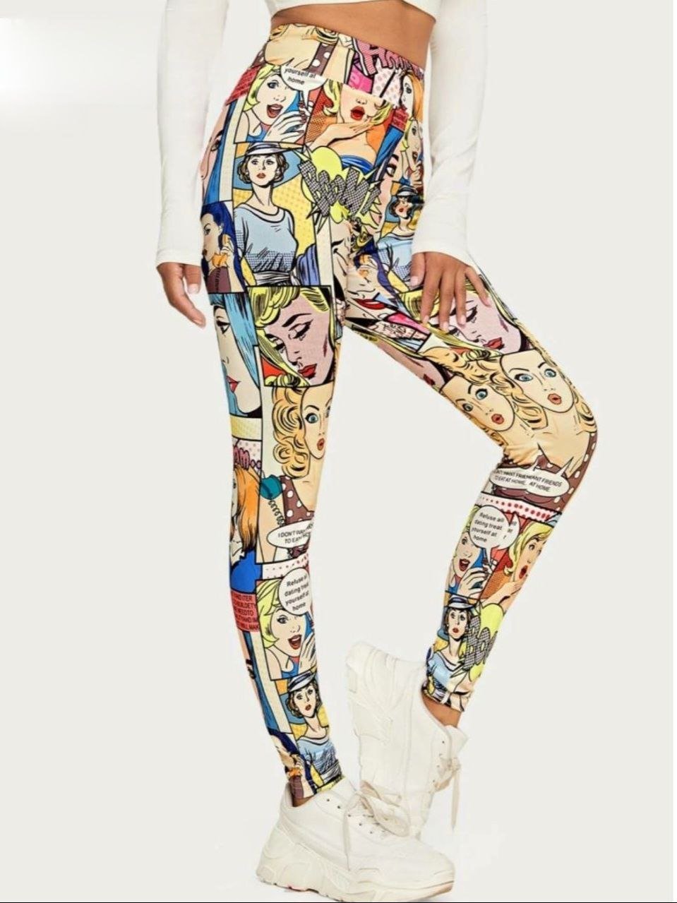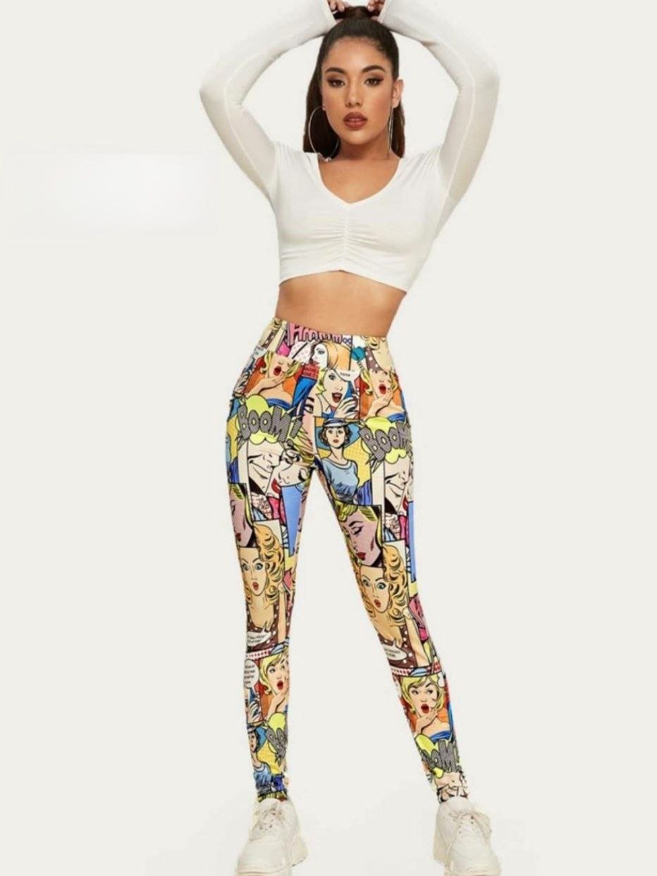 Style: Casual Pattern: Cartoon Description: Letters print high waist leggings, ultra stretch, soft & comfortable, tights for women. Waist: Wrap Fabric Elasticity: Stretchable Fabric Texture: Lycra