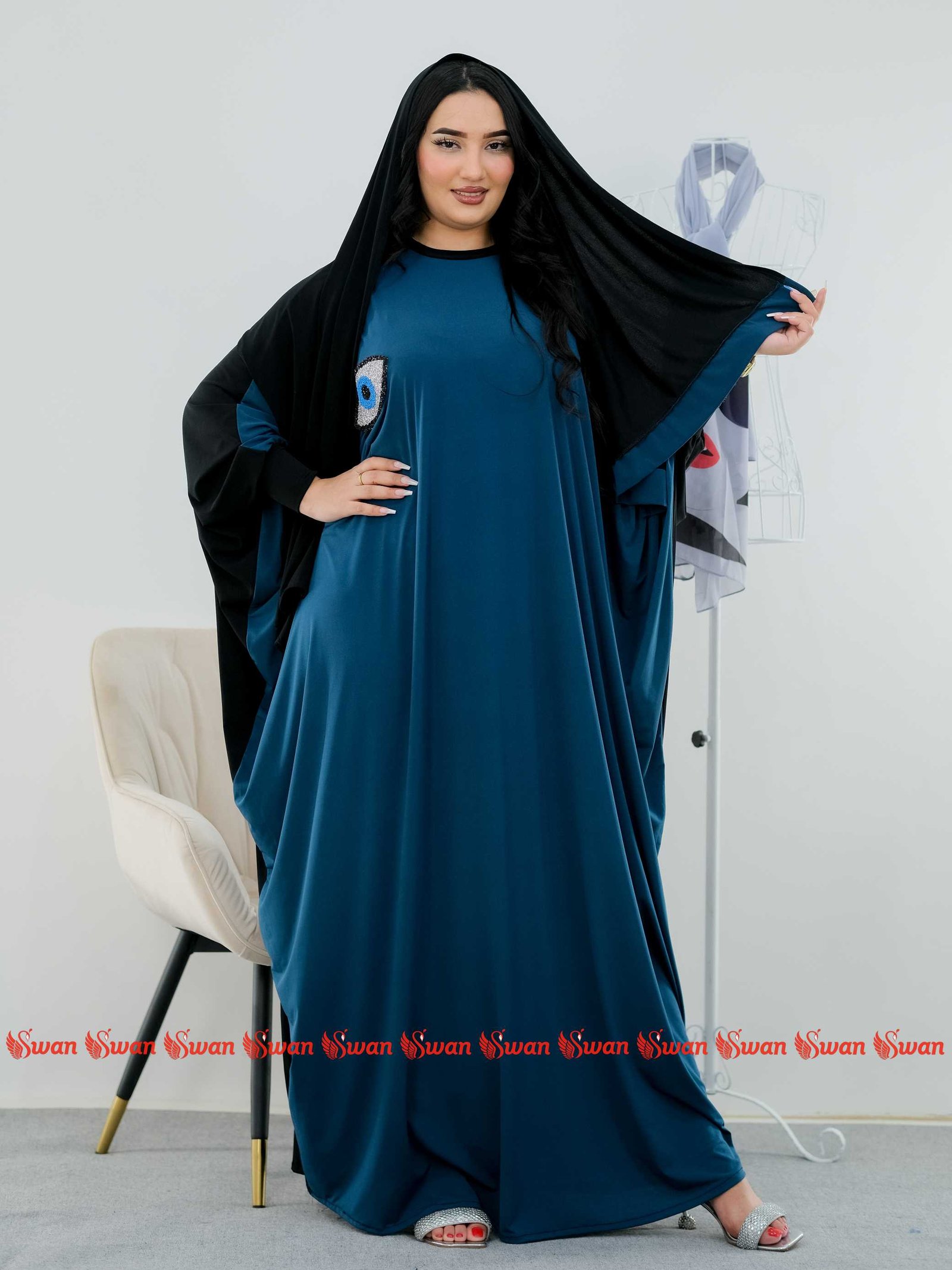 Style: Chic Pattern: Traditional Description: Abaya, 3 Pieces, Long Sleeve Lycra Dress, Chiffon Dress with Hidden Belt, Sequins Chain Embroidery on Chest, Separate Hijab Neck: Round Collar Sleeve: Long bracelet sleeves Waist: Hidden Belt Length: 160cm Fabric Elasticity: Stretchy Fabric Texture: Cotton ITY and Chiffon Washing Instructions: Low-temperature machine wash or dry clean