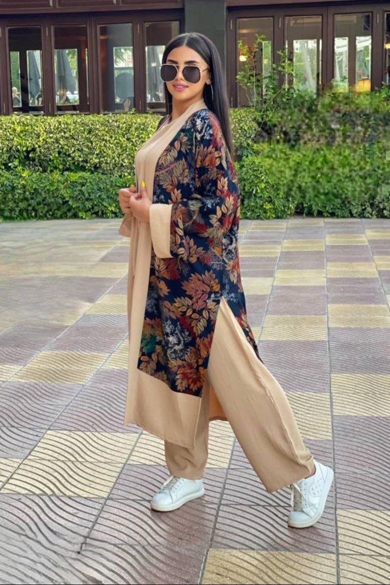 Style: Casual Pattern: Foliage Number of Pieces: 2 pieces Description: Set, Long Open Cardigan, Pants Neck: Regular Sleeve: Long Waist: Regular Fabric Elasticity: Non-stretch Fabric Texture: Crepe Washing Instructions: Low-temperature machine wash or dry clean