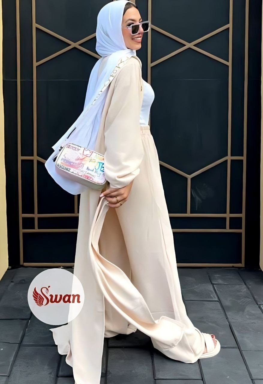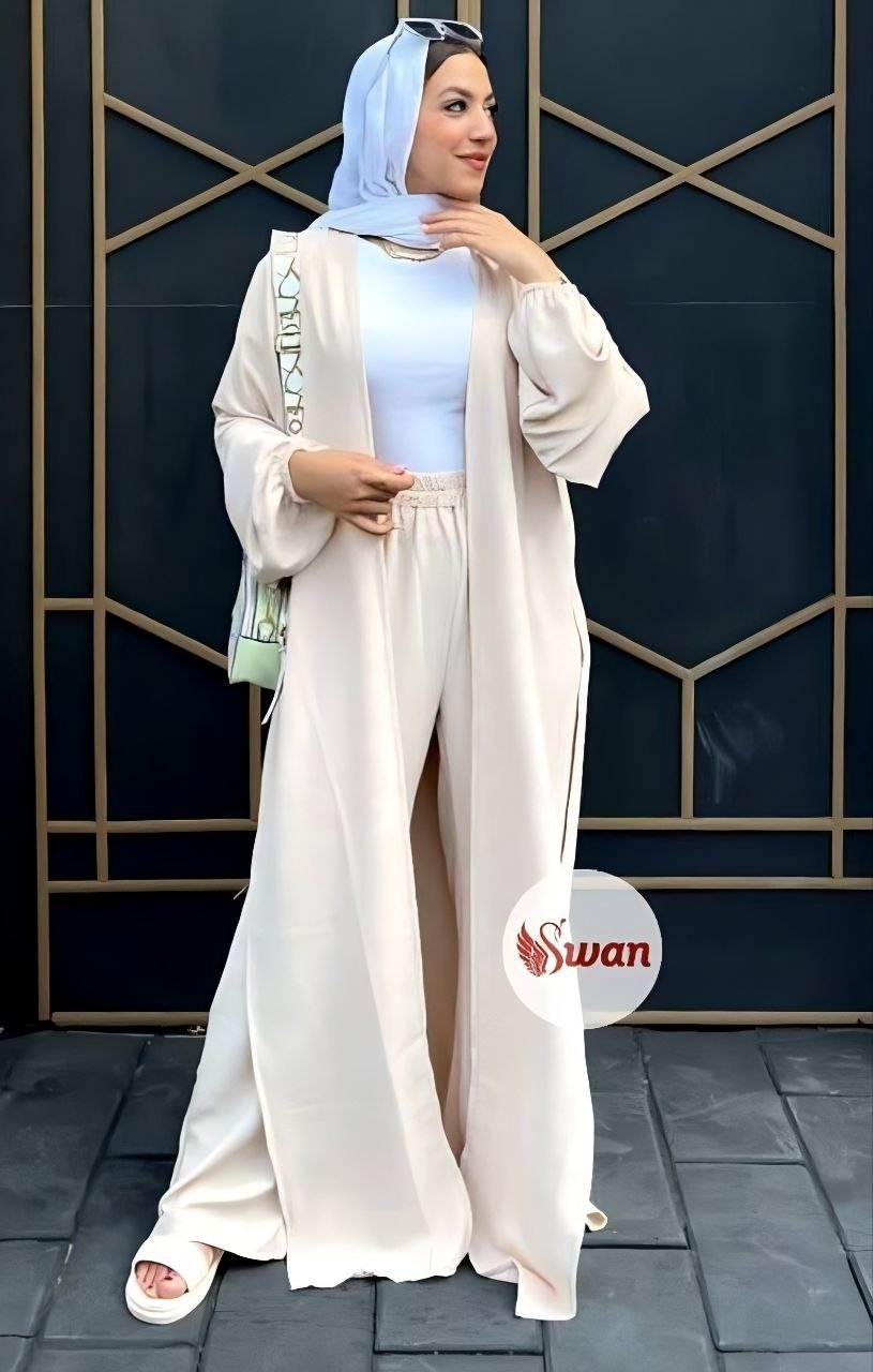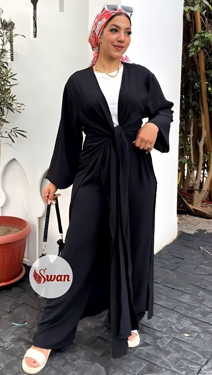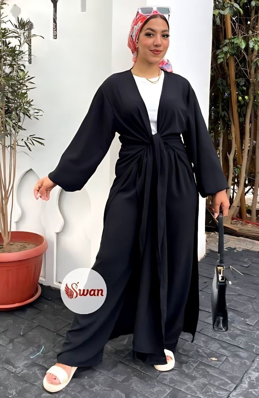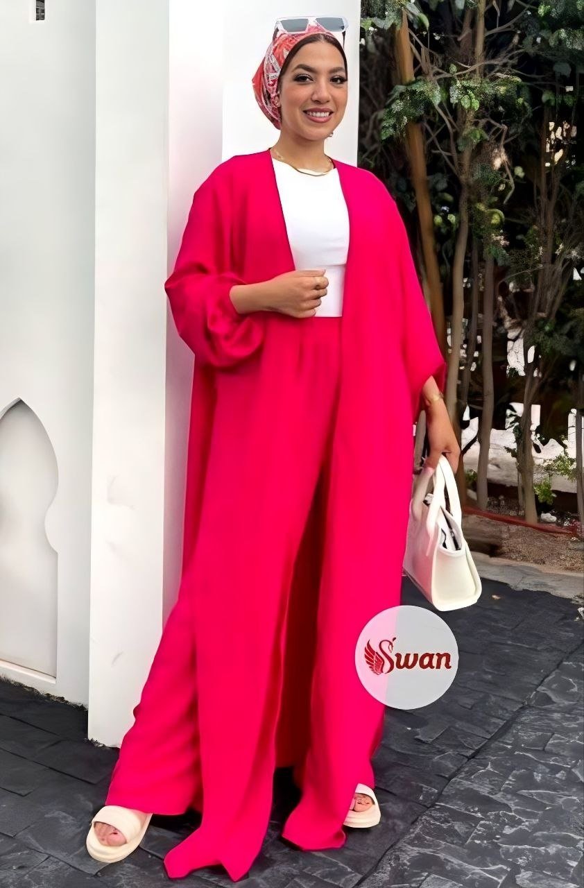 Style: Chic Pattern: Floral Number of Pieces: 3 pieces Description: Set, Long Open Cardigan decorated with Floral print, bag, Pants Neck: Regular Sleeve: Long and Wide Waist: Separate belt Fabric Elasticity: Non-stretch Fabric Texture: Linen