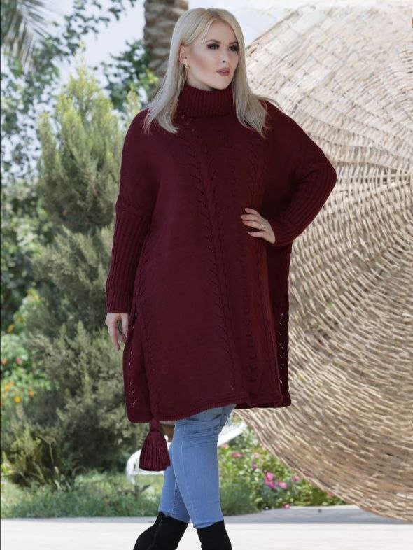 Style: Casual Pattern: Snake Print Description: poncho decorated Snake leather pocket, High collar, Neck: High collar Sleeve: Long bracelet sleeves Length: 96 cm Fabric Elasticity: Stretchable Fabric Texture: Brushed wool