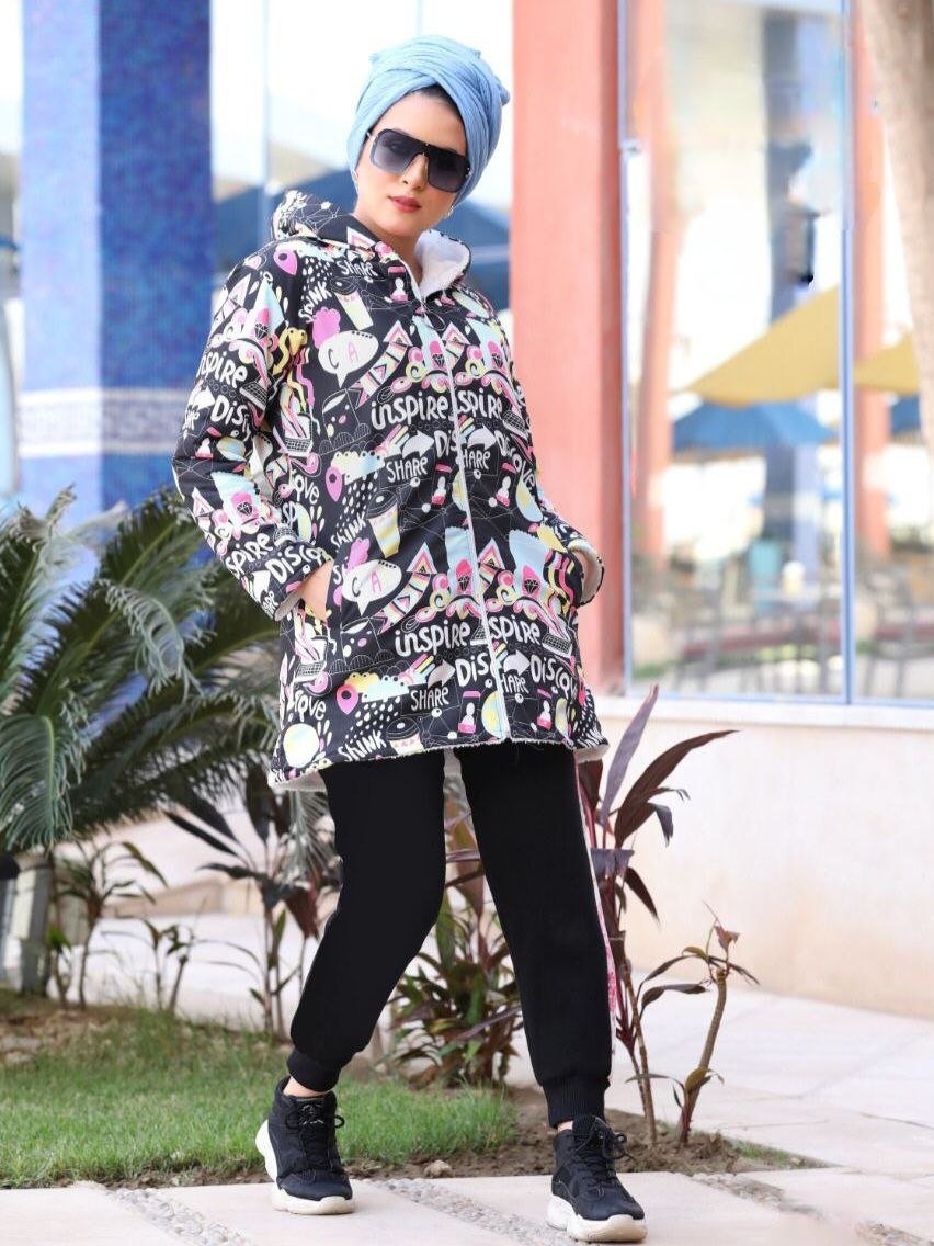 Style: Casual Pattern: Plain Description: Two pieces set, elastic waist pants, jacket with zipper along the jacket with Fur padding and pockets Neck: Round Collar Sleeve: Long bracelet sleeves Waist: Elastic Fabric Elasticity: Stretchable Fabric Texture: Jeans, Cotton Lycra with Fur padding